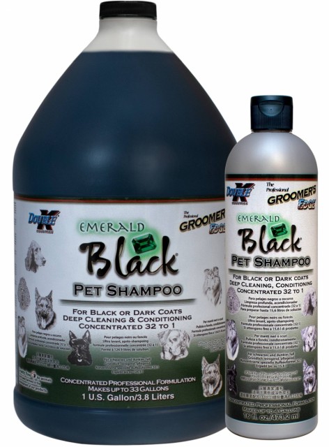Groomers Edge Emerald Black® Professional shampoo renser, pleier og beriker fargen på svart eller mørk pels. Hjelper med å eliminere rødlige toner.