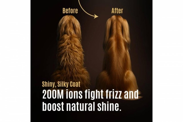 Effektivitet: Kombinasjonen av målrettet luftstrøm og muligheten til å børste pelsen samtidig forkorter tørketiden betraktelig.
